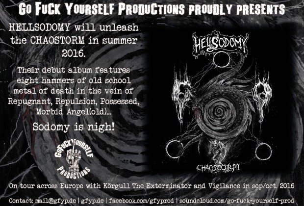 Kadıköy'ün medar-ı iftiharlarından Hellsodomy merakla beklediğimiz "Chaostorm"  isimli ilk albümünü bu yaz Go Fuck Yourself Productions etiketi ile yayınlayacak. Sekiz günah dolu parçayı içeren albümün yanında grup Eylül ve Ekim aylarında Körgull The Exterminator ve Vigilance ile bir Avrupa turu yapacak.